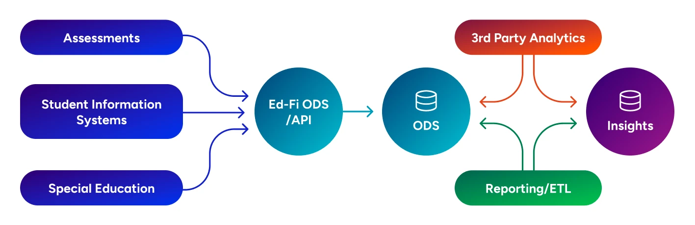 The first lines of code in the ODS/API were written in 2011. Many updates have been made over time: adding the REST API to complement the original XML ingestion process, bringing in popular features like change queries, and making big improvements to the application’s responsiveness. The system does a great job of supporting integration of disparate sources into a single database, which can then be used in analytics or reporting systems to drive insights that can improve educational outcomes.